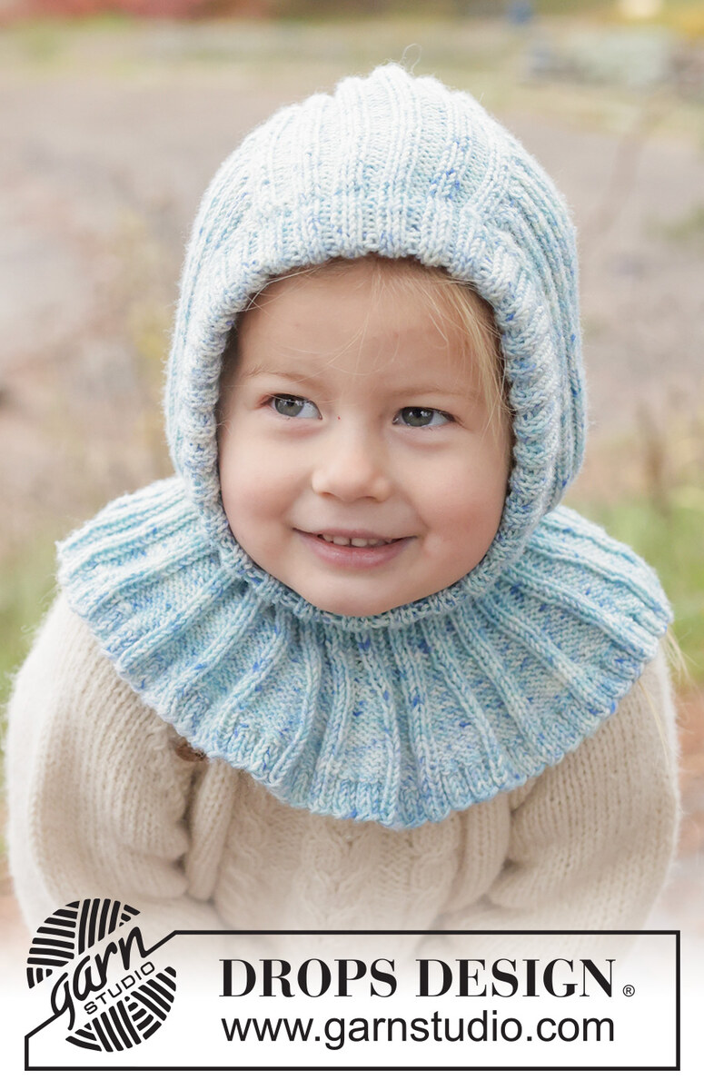 Cagoule tricotée pour enfant en DROPS BabyMerino. Se tricote de bas en haut en côtes. Du 2 au 14 ans