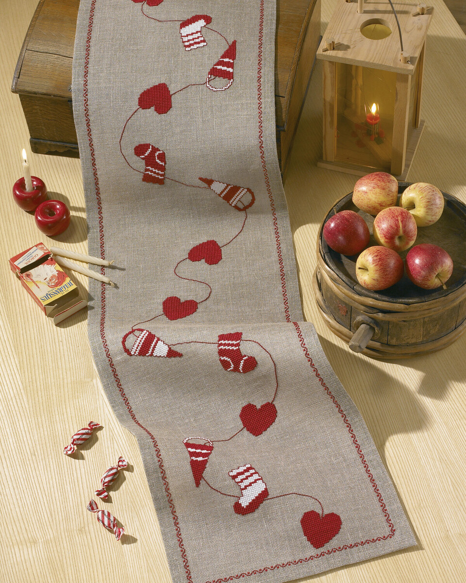 Kit de Broderie Chemin de Table de Noël sur Naturel 33 x 116 cm