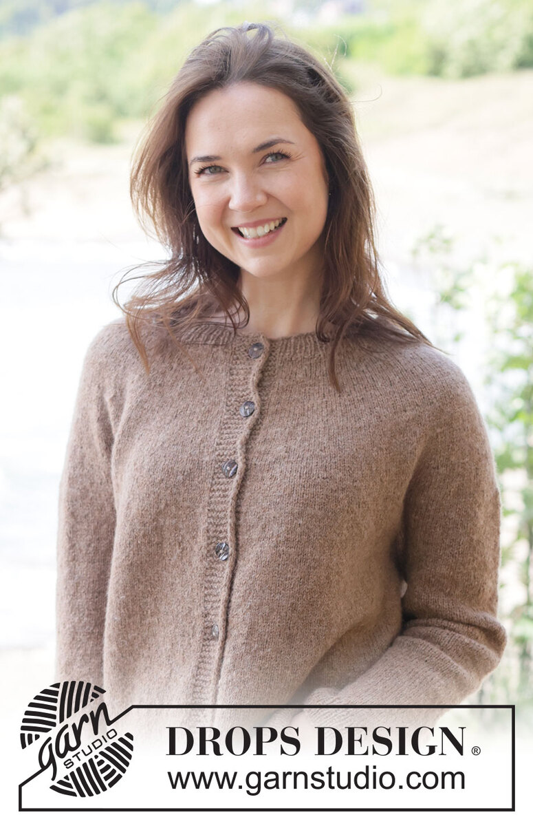 Gilet tricoté de haut en bas en DROPS Sky ou en DROPS Daisy. Se tricote en jersey avec empiècement arrondi, col doublé et bordure et i-cord. Du XS au XXXL.