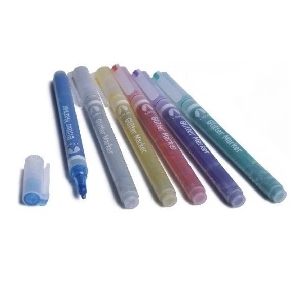 Le paquet contient 6 marqueurs dans les couleurs : bleu, argent, or, rouge, violet et vert.