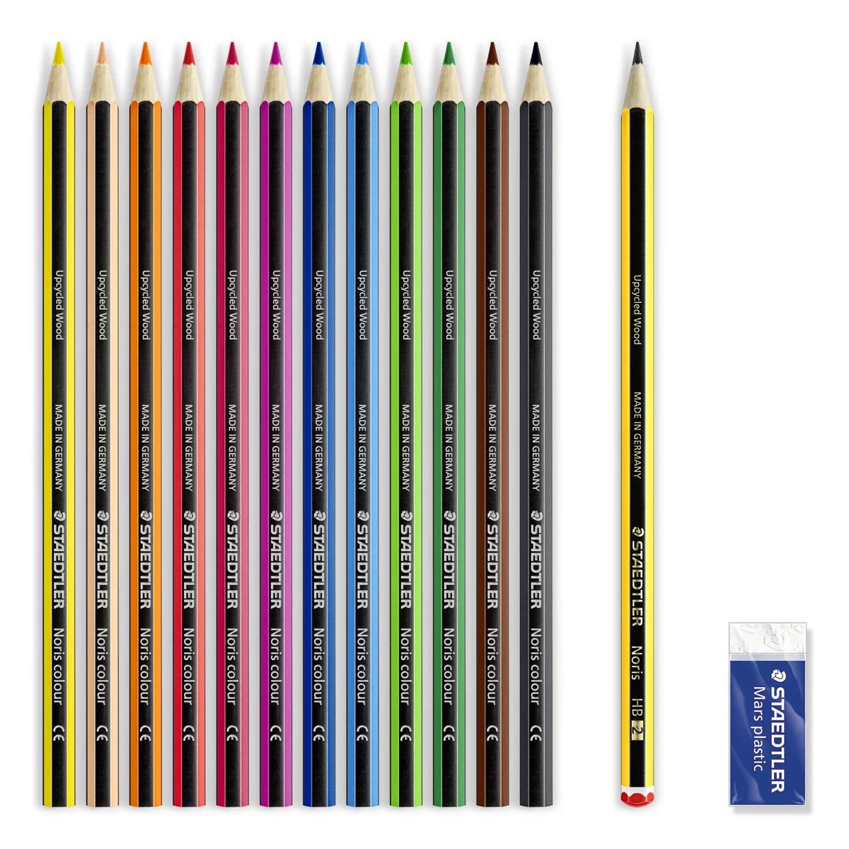 Contenu : 12 crayons de couleur Noris colour (couleurs assorties) + 1 crayon Noris + 1 mini gomme Mars Plastic u/b
