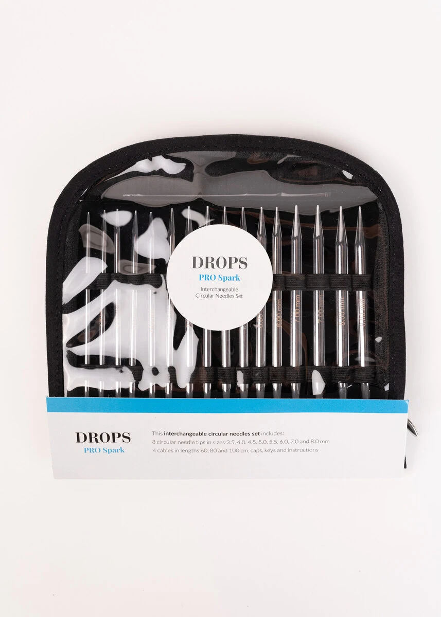 Avec ce set pratique d’aiguilles circulaires interchangeables de DROPS Pro Spark, vous pouvez facilement emporter votre tricot partout avec vous. Les pointes d’aiguilles sont fabriquées en laiton et en chrome, ce qui leur confère une surface lisse et résistante afin que les mailles glissent facilement sur les aiguilles et offrent une expérience de tricot agréable.