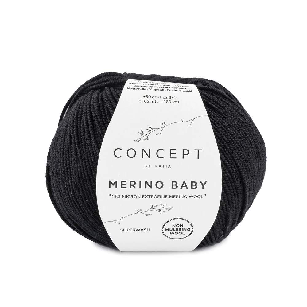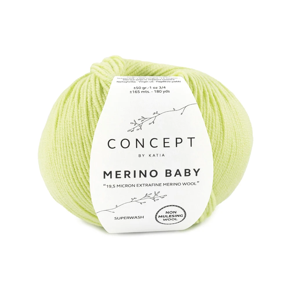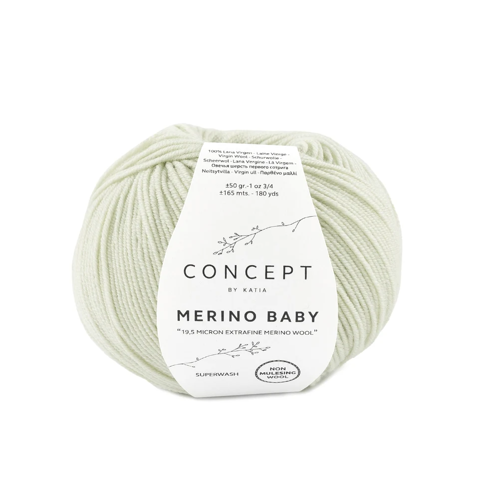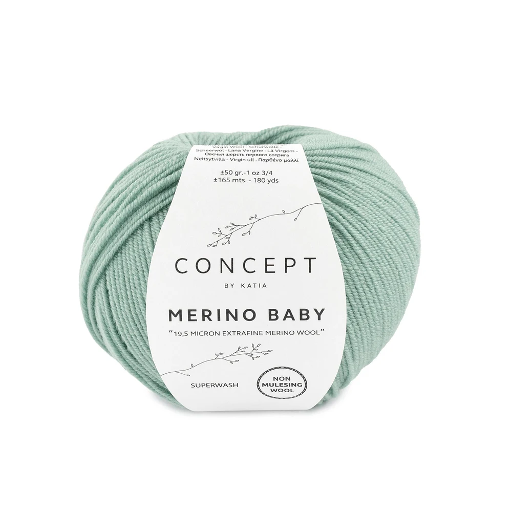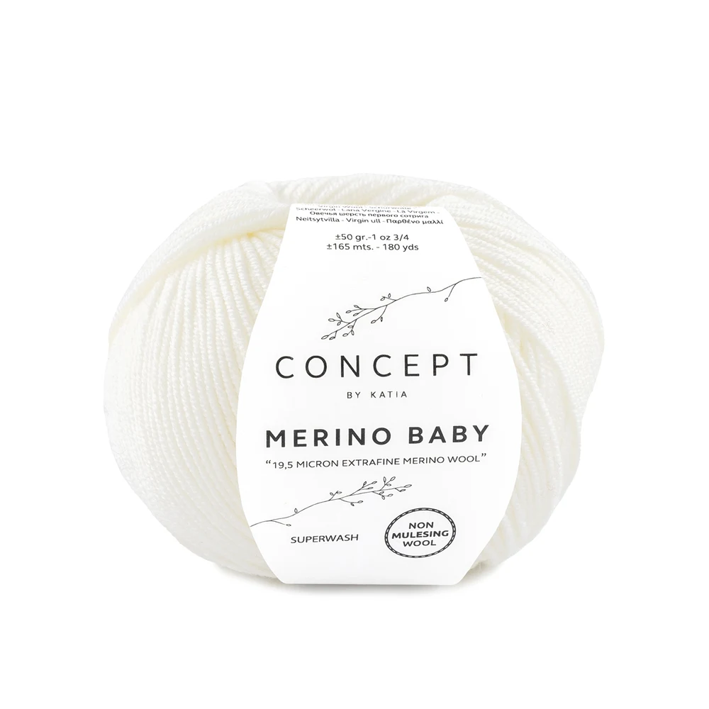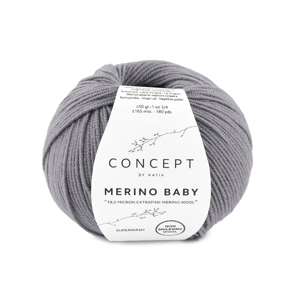 Katia Concept Merino Baby is een extra zachte en klassieke merinowol, ontwikkeld voor maximaal comfort en eenvoudig onderhoud. Het garen is gemaakt van fijne merinowol en behandeld met superwash, waardoor het ideaal is voor dagelijks gebruik. Het combineert hoge kwaliteit met praktische eigenschappen, waardoor het bijzonder geschikt is voor moderne breiprojecten.