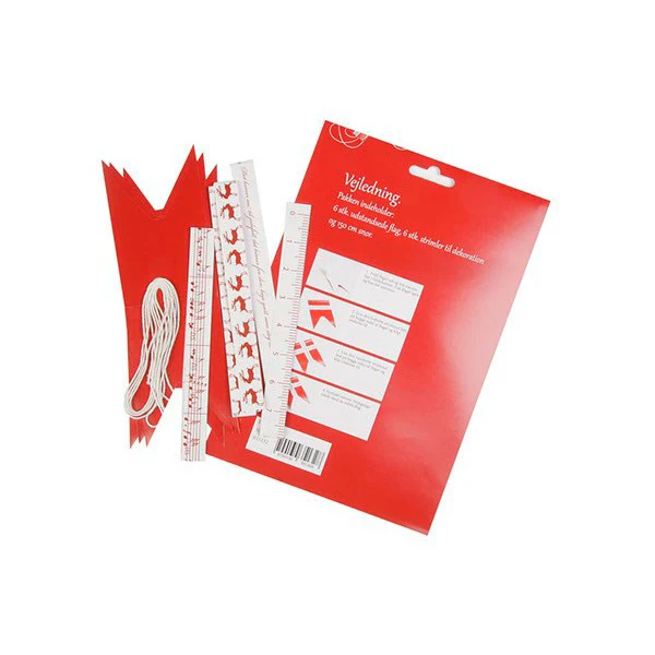 Maak je eigen liaanvlag met deze prachtige set, bestaande uit 6 geperforeerde vlaggen, 6 stroken ter decoratie en een koord van 150 cm.