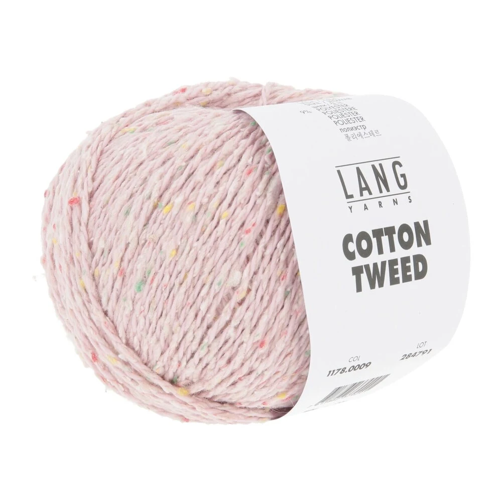 Lang Yarns Cotton Tweed is een zacht en licht garen met een zijdezacht oppervlak en een mooie rustieke tweed-uitstraling, waarbij de combinatie van katoen en zijde zorgt voor een aangename en luchtige kwaliteit, terwijl de kleurrijke nopjes een levendige en speelse structuur in het garen creëren.