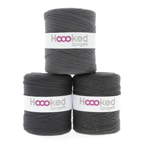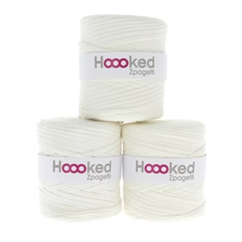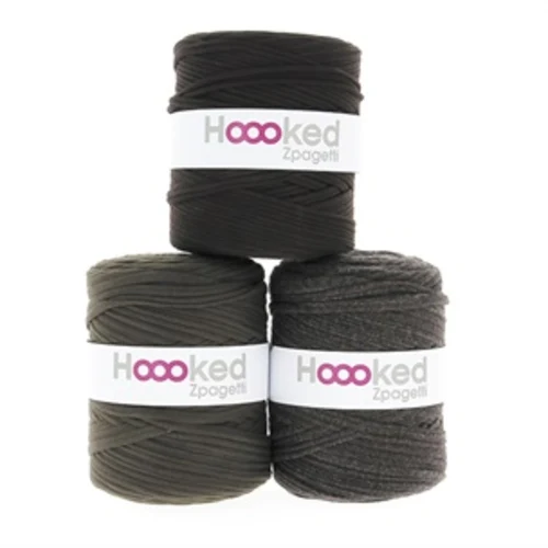 Hoooked Zpagetti is een dik en stevig garen gemaakt van 100% gerecycled t-shirtdoek. Elke bol is uniek en de afbeelding toont enkele van de verschillende tinten/kleuren die het garen kan hebben. Dit betekent dat de bol een andere kleur of tint kan hebben dan op de afbeelding getoond. De afbeelding met drie tinten laat zien hoe de kleur kan variëren. Wanneer je één bol Zpagetti koopt, ontvang je één bol in één tint die op de afbeelding staat of sterk lijkt op wat er is afgebeeld. Als je meerdere bollen in dezelfde kleur bestelt, sturen we altijd degene die het meest op elkaar lijken. Ze kunnen echter nog steeds verschillen in nuance, zelfs als je dezelfde kleur bestelt. Als je een kleur- of tintvoorkeur hebt, laat dit dan zeker weten in het opmerkingenveld bij je bestelling. Elke bol weegt ongeveer 850 gram en wordt altijd als één bol geleverd, zelfs als de afbeelding meerdere bollen toont.