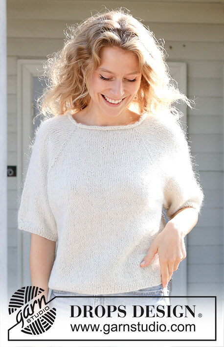 Pull tricoté de haut en bas en DROPS Alpaca et DROPS Kid-Silk. Se tricote en jersey, avec col roulotté, emmanchures raglan et manches courtes. Du S au XXXL.
